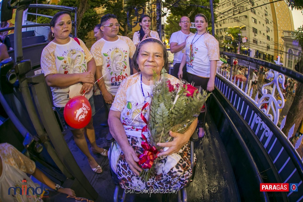 Em seguida, a interprete Fafá de Belém fez sua tradicional homenagem à Imagem Peregrina ao lado de convidados famosos como a Dona Onete, o pugilista Popó e a escritora Glória Peres.